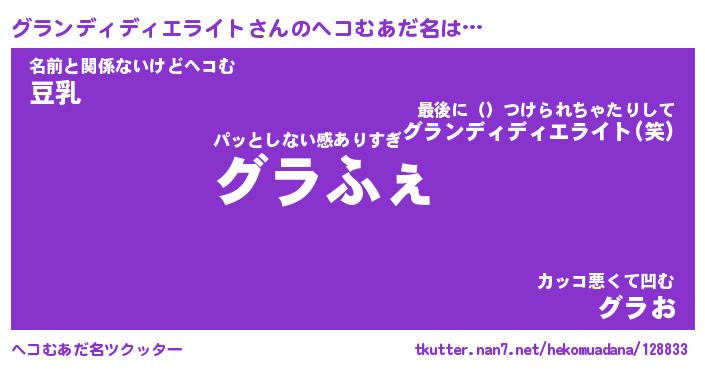 | 男性向けラノベタイトル風あだ名 | 『グランディディエライトの憂鬱』 |