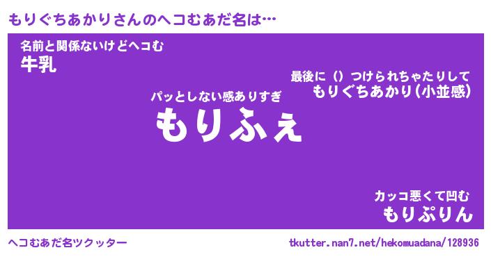 | 女子向けラノベタイトル風あだ名 | 『もりぐちあかり姫と円卓の騎士』 |