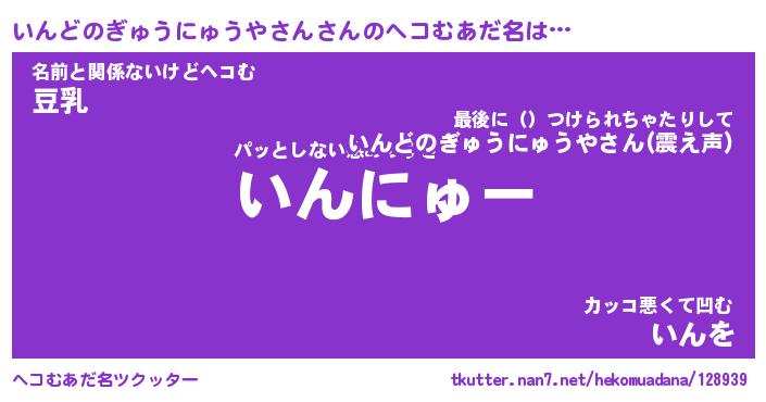 | ヒーロー風カッコイイあだ名 | 『スーパーインドノギュウニュウヤサン』 |