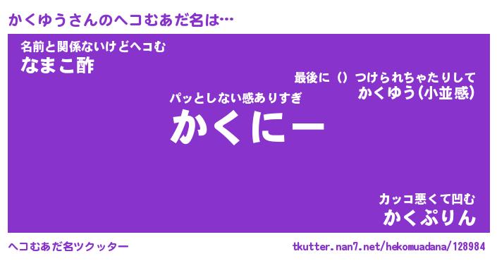 | ポケモン風あだ名 | 『カクチュウ』『カクユダネ』 |