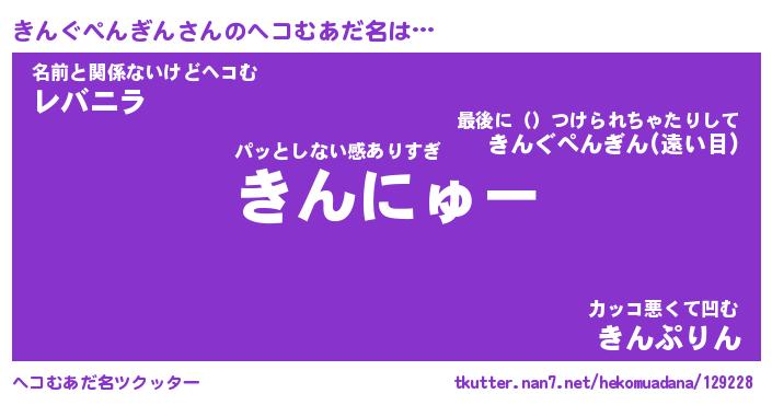 | ヒーロー風カッコイイあだ名 | 『スーパーキングペンギン』 |