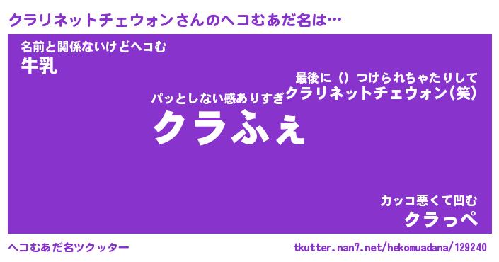 | 意味不明あだ名 | 『ペロリンクラリネットチェウォン』 |