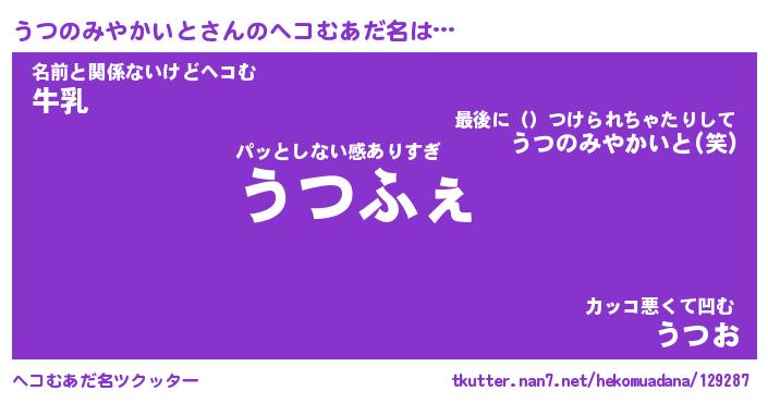 | 胡散臭い通販商品みたいなあだ名 | 『億万長者になれるブレスレット…その名も「うつのみやかいと」』 |