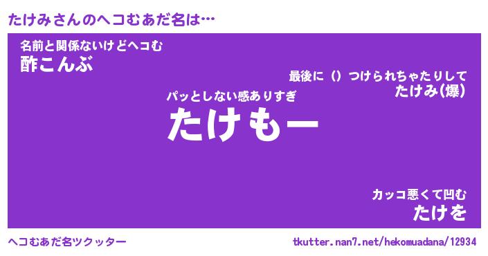 | 意味不明あだ名 | 『ペロリンたけみ』『たけみフォーエバー』 |