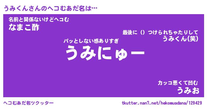 | 2回繰り返すあだ名 | 『うみうみ』『ううみみ』『おたおた』 |