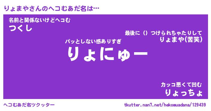 | 2回繰り返すあだ名 | 『りょりょ』『りりょょ』『ぬめぬめ』 |