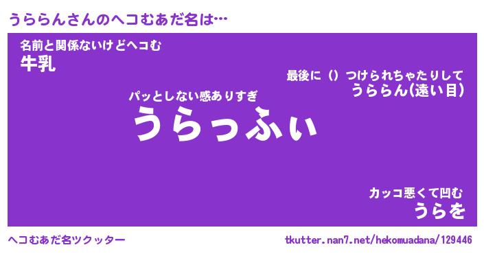 | 2回繰り返すあだ名 | 『うらうら』『ううらら』『うねうね』 |