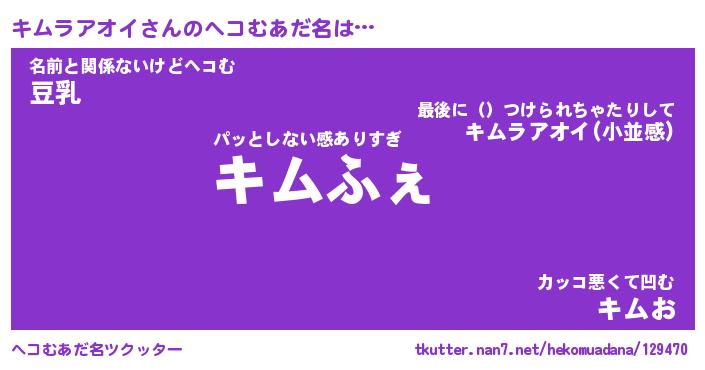 | ヒーロー風カッコイイあだ名 | 『スーパーキムラアオイ』『銀牙騎士キム』 |
