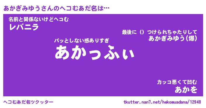 | 胡散臭い通販商品みたいなあだ名 | 『必ず成功する霊験あらたかなお札…その名も「あかぎみゆう」』 |