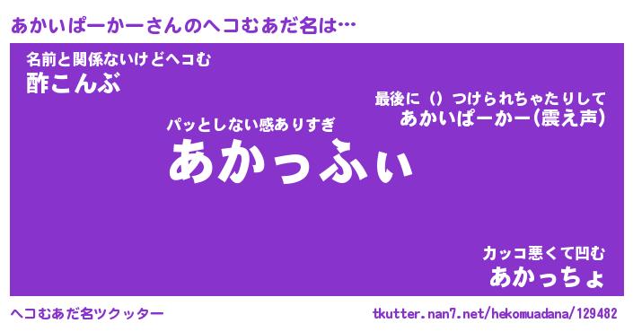 | 2回繰り返すあだ名 | 『あかあか』『ああかか』『ぬぷぬぷ』 |