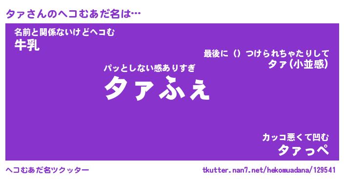| ポケモン風あだ名 | 『タァチュウ』『タァダネ』『ヒタァ』 |