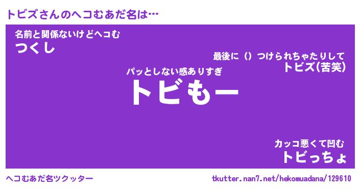 | ヒーロー風カッコイイあだ名 | 『スーパートビズ』『ウルトラトビズマン』 |