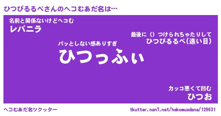| ヒーロー風カッコイイあだ名 | 『スーパーヒツビルルベ』『天弓騎士ヒツ』 |
