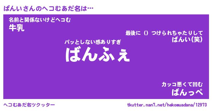 | 意味不明あだ名 | 『ペロリンばんい』『ばんいフォーエバー』 |