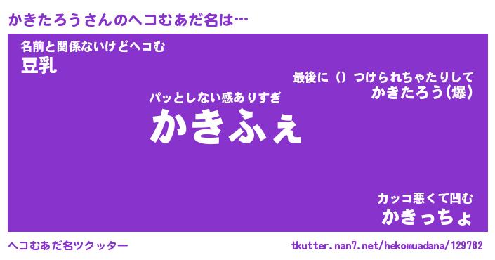 | 男性向けラノベタイトル風あだ名 | 『かきたろうの憂鬱』 |
