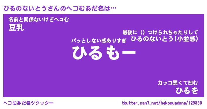 | 自動車の名前っぽいあだ名 | 『ヒルティマ』『ヒクア』『ヒント』 |