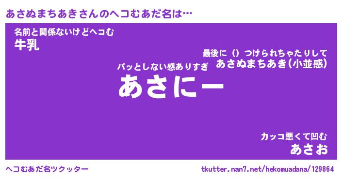 | 男性向けラノベタイトル風あだ名 | 『あさぬまちあきの憂鬱』 |