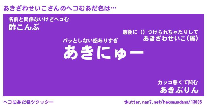 | 男性向けラノベタイトル風あだ名 | 『あきざわせいこの憂鬱』 |
