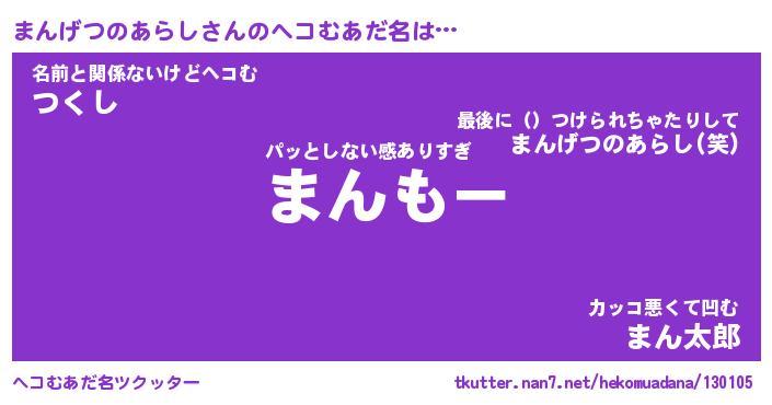 | ツイッター | まんげつのあらしさんのツイッターID『masyumaro_kun』 |