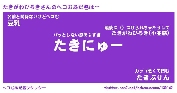 | 恥ずかしいあだ名 | 『プリティーたきがわひろき』『たきちん』 |