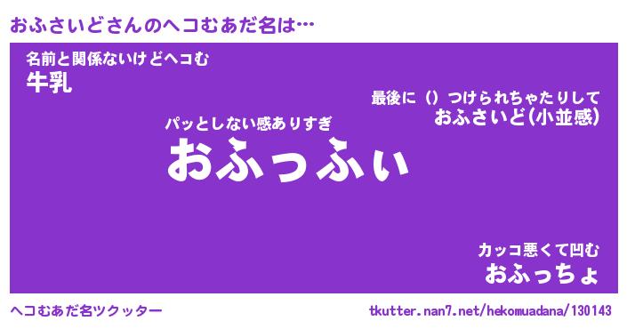 | 恥ずかしいあだ名 | 『プリティーおふさいど』『おふっちょ』 |