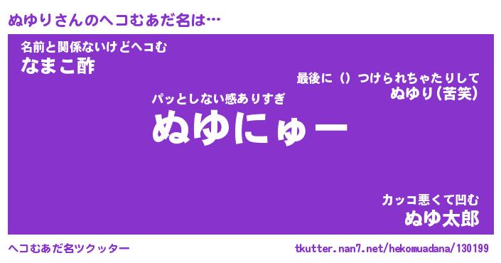 | ポケモン風あだ名 | 『ヌユチュウ』『ヌユリダネ』 |
