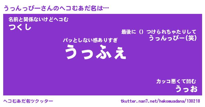 | ヒーロー風カッコイイあだ名 | 『スーパーウッンッピー』『炎刃騎士ウッ』 |