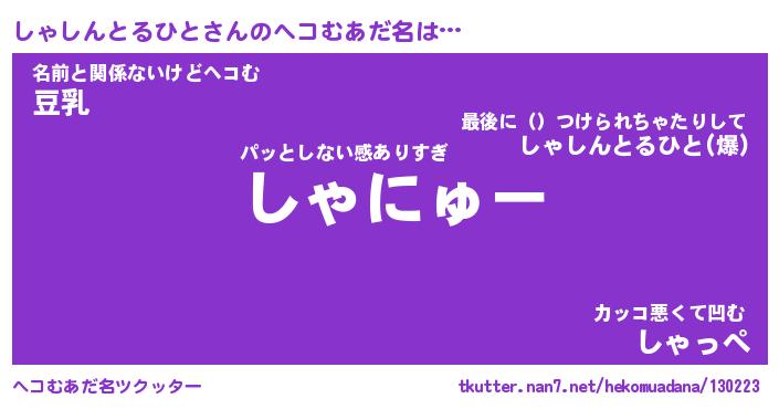 | 2回繰り返すあだ名 | 『しゃしゃ』『ししゃゃ』『あんあん』 |