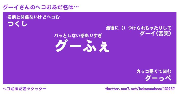 | 男性向けラノベタイトル風あだ名 | 『グーイの憂鬱』 |