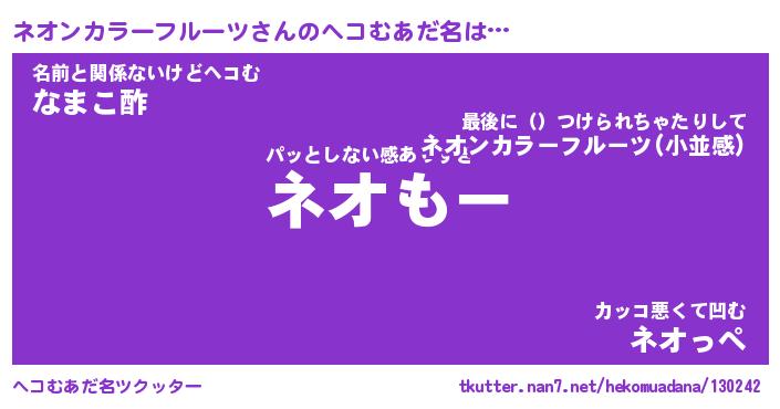 | 恥ずかしいあだ名 | 『プリティーネオンカラーフルーツ』 |