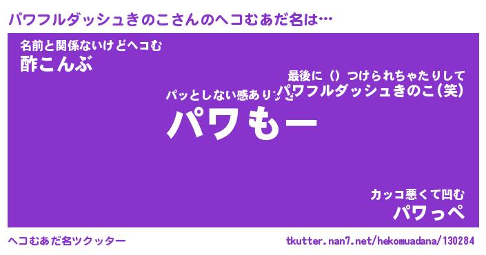 | 恥ずかしいあだ名 | 『プリティーパワフルダッシュきのこ』 |