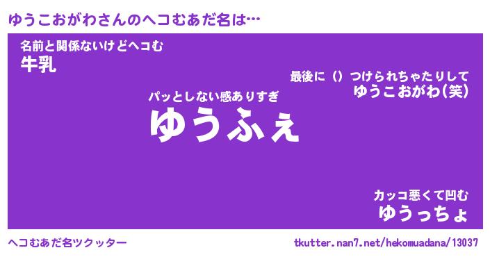 | 意味不明あだ名 | 『ペロリンゆうこおがわ』 |