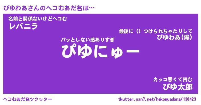| 男性向けラノベタイトル風あだ名 | 『ぴゆわあの憂鬱』 |