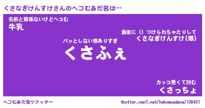 | 欧米人風あだ名 | 『マイケルくさなぎけんすけ』 |