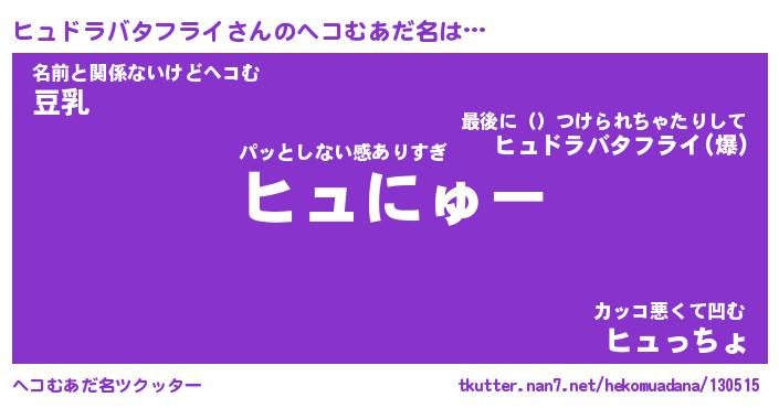 | ヒーロー風カッコイイあだ名 | 『スーパーヒュドラバタフライ』 |