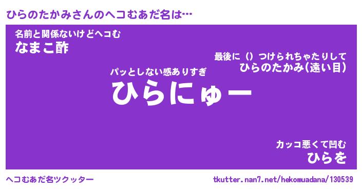 | 肩書あだ名 | 『ひらのたかみ店長』『ひらのたかみ班長』 |
