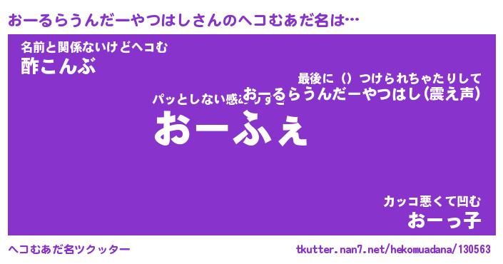 | 2回繰り返すあだ名 | 『おーおー』『おおーー』『あんあん』 |