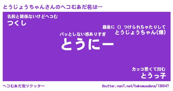 | ポケモン風あだ名 | 『トウチュウ』『トウジダネ』 |