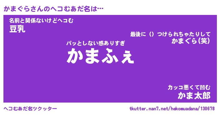 | 意味不明あだ名 | 『ペロリンかまぐら』『永久保存かまぐら』 |