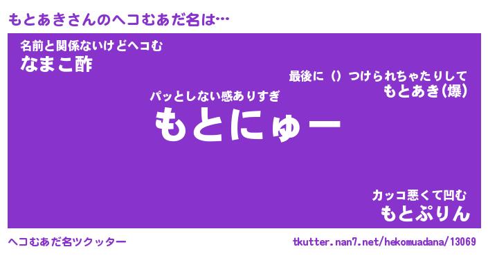 | 意味不明あだ名 | 『ペロリンもとあき』『永久保存もとあき』 |