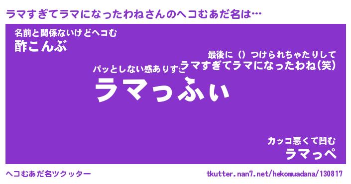 | 意味不明あだ名 | 『ペロリンラマすぎてラマになったわね』 |