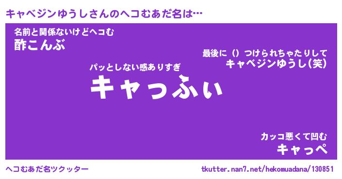 | 恥ずかしいあだ名 | 『プリティーキャベジンゆうし』 |