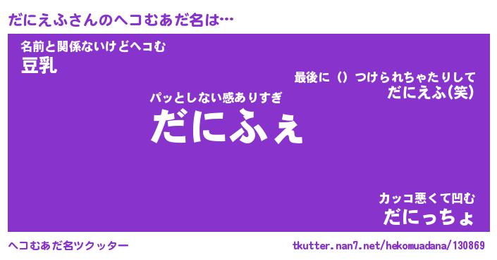 | 意味不明あだ名 | 『ペロリンだにえふ』『永久保存だにえふ』 |