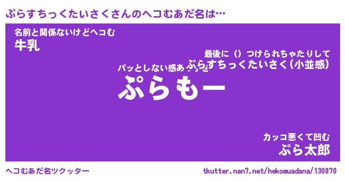 | ポケモン風あだ名 | 『プラチュウ』『プラスダネ』 |