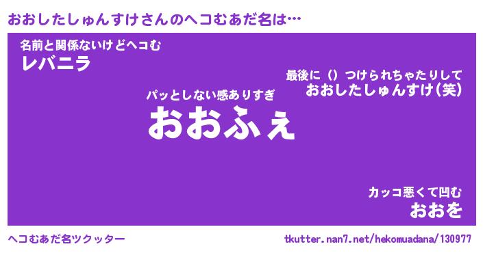 | 男性向けラノベタイトル風あだ名 | 『おおしたしゅんすけの憂鬱』 |