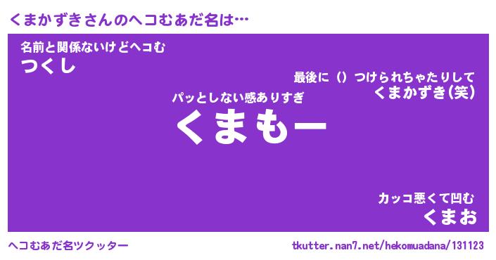 | ヒーロー風カッコイイあだ名 | 『スーパークマカズキ』『暗黒騎士クマ』 |