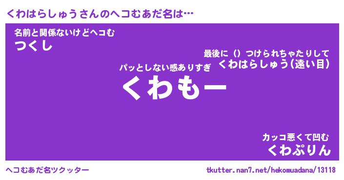 | ヒーロー風カッコイイあだ名 | 『スーパークワハラシュウ』 |