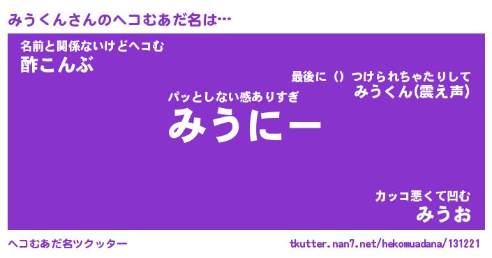 | ヒーロー風カッコイイあだ名 | 『スーパーミウクン』『天弓騎士ミウ』 |