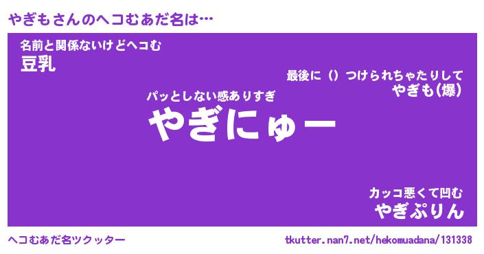 | ポケモン風あだ名 | 『ヤギチュウ』『ヤギモダネ』 |