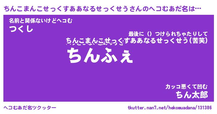 | ポケモン風あだ名 | 『チンチュウ』『チンコダネ』 |